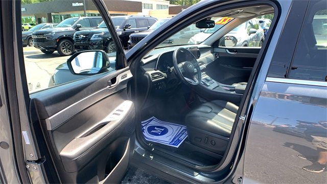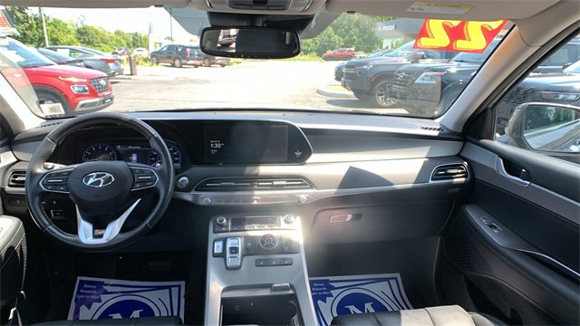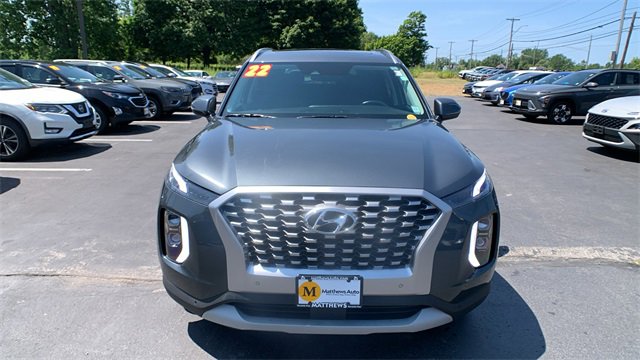 Certified. Steel Graphite 2022 Hyundai Palisade SEL AWD 8-Speed Automatic with SHIFTRONIC V6 115-Volt AC Power Outlet, 3.648 Axle Ratio, 3rd row seats: split-bench, 3rd Row USB Outlets, 4-Wheel Disc Brakes, 6 Speakers, 7" High-Resolution Cluster Display, 8-Way Power Passenger Seat, ABS brakes, Acoustic Front Side Glass, Air Conditioning, Alloy wheels, AM/FM radio, Apple CarPlay & Android Auto, Auto High-beam Headlights, Auto Leveling Rear Suspension, Auto-dimming Rear-View mirror, Automatic temperature control, Brake assist, Bumpers: body-color, Cargo Cover/Screen, Cargo Net, Carpeted Floor Mats, Cloth Seat Trim, Convenience Package P2, Delay-off headlights, Driver door bin, Driver vanity mirror, Driver's Seat Integrated Memory System, Dual front impact airbags, Dual front side impact airbags, Electronic Stability Control, First Aid Kit, Four wheel independent suspension, Front anti-roll bar, Front Bucket Seats, Front Center Armrest, Front dual zone A/C, Front Parking Sensors, Front reading lights, Fully automatic headlights, Garage door transmitter: HomeLink, Hands-Free Smart Liftgate, Heated 2nd Row Seats, Heated door mirrors, Heated Front Bucket Seats, Heated front seats, Heated Steering Wheel, Highway Drive Assist I, Illuminated entry, Knee airbag, Leather Seat Trim, LED Taillights, Low tire pressure warning, Occupant sensing airbag, Outside temperature display, Overhead airbag, Overhead console, Panic alarm, Passenger door bin, Passenger vanity mirror, Power 3rd Row Seating, Power door mirrors, Power driver seat, Power moonroof, Power steering, Power windows, Premium Dashboard & Door Armrests, Premium Package, Premium Package P3, Radio data system, Radio: AM/FM/MP3 Display Audio, Radio: AM/FM/MP3 Premium Audio System, Rear air conditioning, Rear anti-roll bar, Rear audio controls, Rear reading lights, Rear Side Window Sunshades, Rear window defroster, Rear window wiper, Reclining 3rd row seat, Remote keyless entry, Security system, Speed control, Speed-sensing steering, Split folding rear seat, Spoiler, Steering wheel mounted audio controls, Tachometer, Telescoping steering wheel, Tilt steering wheel, Traction control, Trip computer, Turn signal indicator mirrors, Ultrasonic Rear Occupant Alert, Variably intermittent wipers, Wheel Locks, Wheels: 18" x 7.5J Machine Finish Alloy, Wheels: 20" x 7.5J Split 5-Spoke Machined Alloy, Wireless Phone Charger.