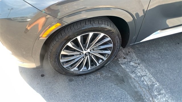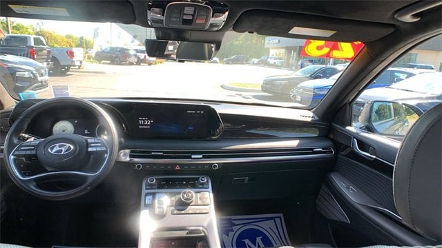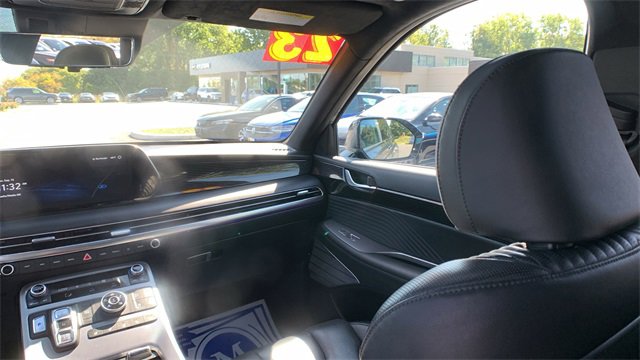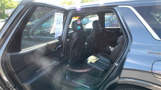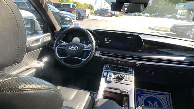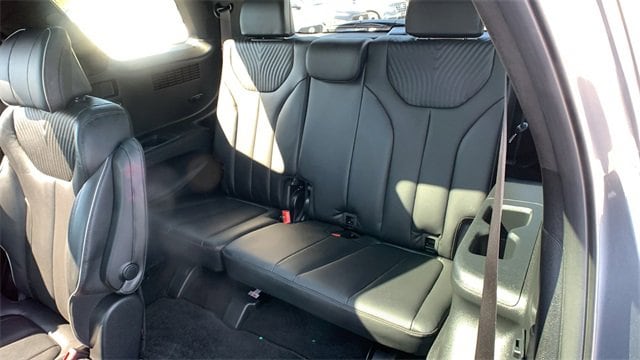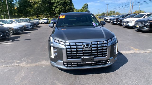 Certified. Steel Graphite 2023 Hyundai Palisade Calligraphy AWD 8-Speed Automatic with SHIFTRONIC V6 12 Speakers, 3.648 Axle Ratio, 3rd row seats: split-bench, 4-Wheel Disc Brakes, ABS brakes, Air Conditioning, Alloy wheels, AM/FM radio: SiriusXM, Apple CarPlay & Android Auto, Auto High-beam Headlights, Auto-dimming door mirrors, Auto-dimming Rear-View mirror, Auto-leveling suspension, Automatic temperature control, Brake assist, Bumpers: body-color, Cargo Cover/Screen, Cargo Net, Cargo Tray, Carpeted Floor Mats, Compass, Delay-off headlights, Driver door bin, Driver vanity mirror, Dual front impact airbags, Dual front side impact airbags, Electronic Stability Control, Emergency communication system: Blue Link Connected Car Service (3-year complimentary subscription), Exterior Parking Camera Rear, Four wheel independent suspension, Front anti-roll bar, Front Bucket Seats, Front Center Armrest, Front dual zone A/C, Front reading lights, Fully automatic headlights, Garage door transmitter: HomeLink, harman/kardon® Speakers, Heads-Up Display, Heated & Ventilated Front Bucket Seats, Heated door mirrors, Heated front seats, Heated rear seats, Heated steering wheel, Illuminated entry, Knee airbag, Low tire pressure warning, Memory seat, Navigation System, Occupant sensing airbag, Option Group 01, Outside temperature display, Overhead airbag, Overhead console, Panic alarm, Passenger door bin, Passenger vanity mirror, Power door mirrors, Power driver seat, Power Liftgate, Power moonroof, Power passenger seat, Power steering, Power windows, Premium Nappa Leather Seat Trim, Radio data system, Radio: AM/FM/MP3 Premium Audio System, Rain sensing wipers, Rear air conditioning, Rear anti-roll bar, Rear audio controls, Rear reading lights, Rear side impact airbag, Rear window defroster, Rear window wiper, Reclining 3rd row seat, Remote keyless entry, Security system, Speed control, Speed-sensing steering, Split folding rear seat, Spoiler, Steering wheel mounted audio controls, Tachometer, Telescoping steering wheel, Tilt steering wheel, Traction control, Trip computer, Turn signal indicator mirrors, Variably intermittent wipers, Ventilated front seats, Ventilated rear seats, Wheel Locks, Wheels: 20" x 7.5J Calligraphy Exclusive Alloy.