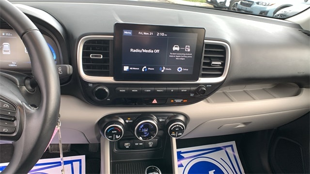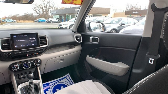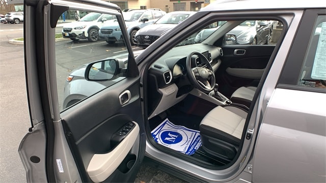 Certified. Shimmering Silver 2023 Hyundai Venue SEL FWD CVT I4 4-Wheel Disc Brakes, 6 Speakers, 6.052 Axle Ratio, 6.5J x 17" Alloy Wheels, ABS brakes, Air Conditioning, Alloy wheels, AM/FM radio, Apple CarPlay & Android Auto, Auto High-beam Headlights, Automatic temperature control, Brake assist, Bumpers: body-color, Cargo Net, Cargo Tray, Carpeted Floor Mats, Cloth Seat Trim, Delay-off headlights, Driver door bin, Driver vanity mirror, Dual front impact airbags, Dual front side impact airbags, Electronic Stability Control, First Aid Kit, Front anti-roll bar, Front Bucket Seats, Front Center Armrest, Front reading lights, Front wheel independent suspension, Fully automatic headlights, Illuminated entry, Leather Shift Knob, Leather steering wheel, Low tire pressure warning, Occupant sensing airbag, Option Group 01, Outside temperature display, Overhead airbag, Overhead console, Panic alarm, Passenger door bin, Passenger vanity mirror, Power door mirrors, Power moonroof, Power steering, Power windows, Radio: AM/FM/HD Display Audio, Rear Bumper Applique, Rear window defroster, Rear window wiper, Remote keyless entry, Roof rack: rails only, Security system, Speed control, Speed-sensing steering, Split folding rear seat, Spoiler, Steering wheel mounted audio controls, Tachometer, Telescoping steering wheel, Tilt steering wheel, Traction control, Trip computer, Variably intermittent wipers, Wheel Locks.
