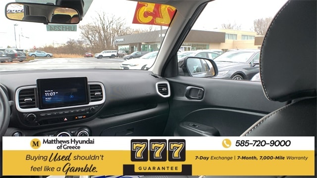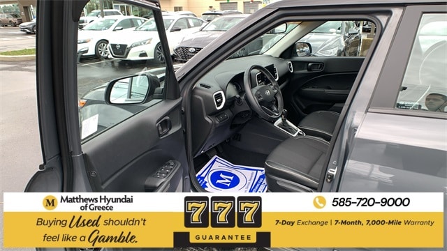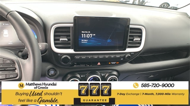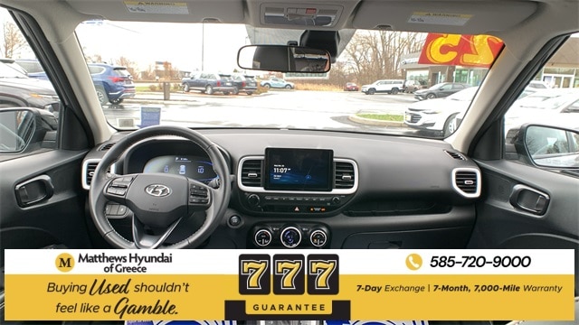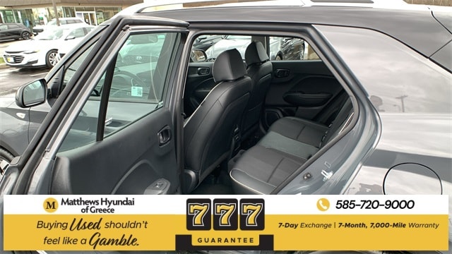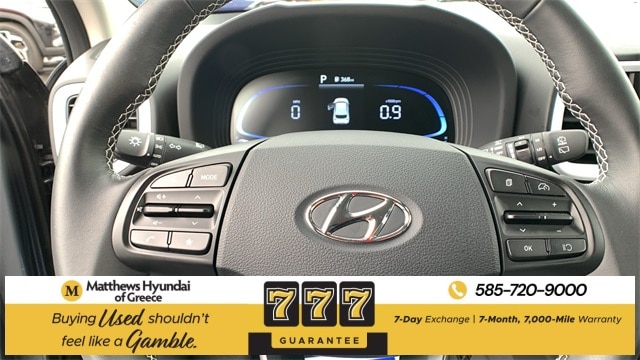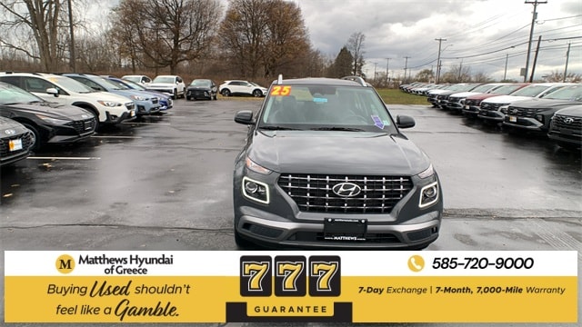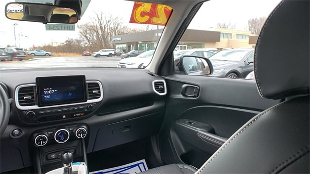 Certified. Ecotronic Gray w/Black Roof 2025 Hyundai Venue Limited FWD CVT I4 4-Wheel Disc Brakes, 6 Speakers, 6.5J x 17" Alloy Wheels, ABS brakes, Air Conditioning, Alloy wheels, AM/FM radio: SiriusXM, Apple CarPlay & Android Auto, Auto High-beam Headlights, Automatic temperature control, Brake assist, Bumpers: body-color, Cargo Net, Carpeted Floor Mats, Cloth & Leatherette Seat Trim, Delay-off headlights, Driver door bin, Driver vanity mirror, Dual front impact airbags, Dual front side impact airbags, Electronic Stability Control, Emergency communication system, Front anti-roll bar, Front Bucket Seats, Front Center Armrest, Front reading lights, Front wheel independent suspension, Fully automatic headlights, Heated door mirrors, Heated Front Bucket Seats, Heated front seats, Illuminated entry, Leather Shift Knob, Leather steering wheel, Low tire pressure warning, Mudguards, Navigation System, Occupant sensing airbag, Option Group 01, Outside temperature display, Overhead airbag, Overhead console, Panic alarm, Passenger door bin, Passenger vanity mirror, Power door mirrors, Power steering, Power windows, Radio: AM/FM/HD/SiriusXM w/Navigation System, Rear Seat Cup Holder, Rear window defroster, Rear window wiper, Remote keyless entry, Reversible Cargo Tray, Security system, Speed control, Speed-sensing steering, Split folding rear seat, Spoiler, Steering wheel mounted audio controls, Tachometer, Telescoping steering wheel, Tilt steering wheel, Traction control, Trip computer, Variably intermittent wipers, Wheel Locks.