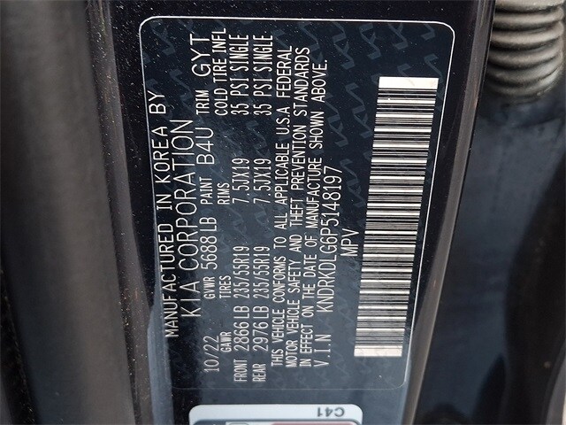 * Limited Warranty: 12 Month/12,000 Mile (whichever comes first) "Platinum Coverage" from certified purchase date (for Kia Certified Pre-Owned program)