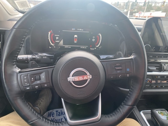 Nissan Pathfinder SL. Purchased the car July 2021 when they first came out. I love everything about this car. I have not had any issues to date. Just went thru a snow storm with about 7inches of ice and snow. I am on a pretty steep hill and zero issues in the snow and ice. I really can't think of an issue i have with this car. I have taken this on 9 hour trip with a total of seven and had no issues in the mountains.