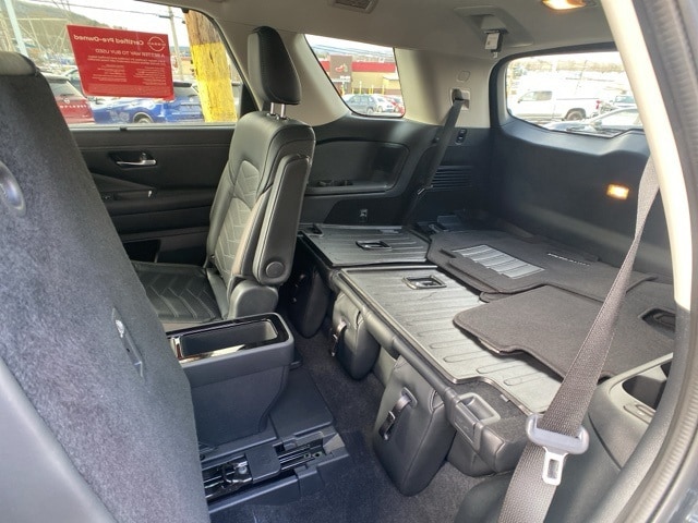 You'll appreciate its safety and technology features! This vehicle has achieved Certified Pre-Owned status, by passing Nissan's comprehensive certification process, including a comprehensive 156 point inspection! All of the premium features expected of a Nissan are offered, including: heated and ventilated seats, a trailer hitch, and cruise control. It features an automatic transmission, 4-wheel drive, and a 3.5 liter 6 cylinder engine.
