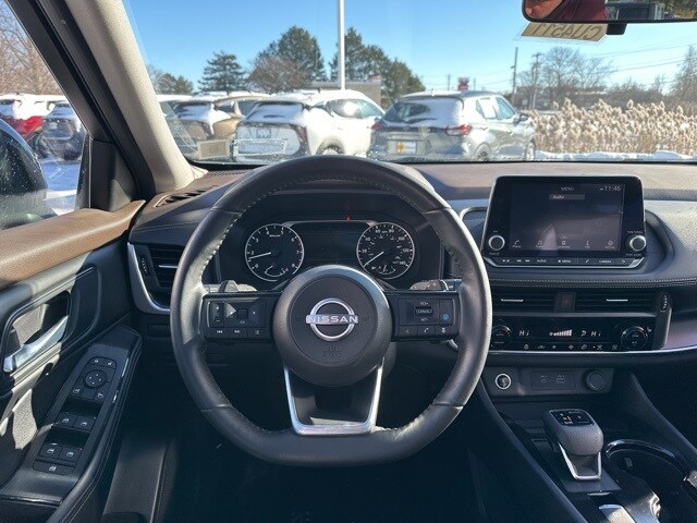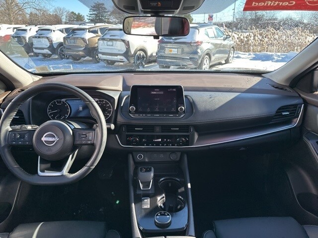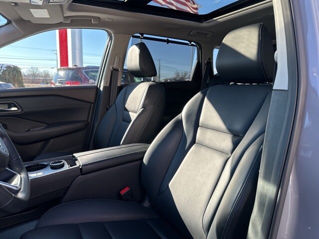 Certified. Boulder Gray Pearl/Super Black 2023 Nissan Rogue SV AWD CVT with Xtronic 1.5L I3 Turbocharged DOHC 12V LEV3-ULEV50 201hp **NON SMOKER**, **NEW BRAKES**, **NEW TIRES**, **RECENT OIL CHANGE**, **LOW MILEAGE**, AWD, Black High Gloss Exterior Mirror Caps, Heated Driver & Front Passenger Seats, Heated Leather Wrapped Steering Wheel, Leatherette Door Trim Inserts w/Stitch, Midnight Edition Package, Panoramic Moonroof, Power Liftgate, PRIMATEX Leatherette Seat Trim, Rear Door Sunshades, Rear Personal Lights, Security Alarm, Silver Painted Roof Rails, SV Premium B Package, TailorFit Leatherette Seat Trim, Wheels: 18" Gloss Black Painted Alloy.