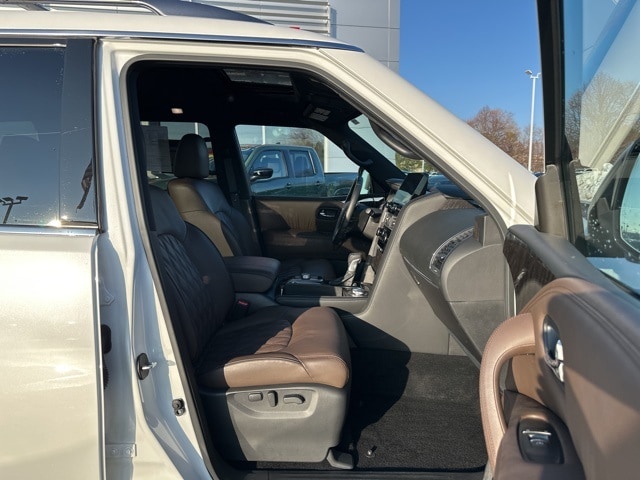 Certified. Aspen White 2024 Nissan Armada Platinum 4WD 7-Speed Automatic 5.6L V8 DOHC 32V LEV3-ULEV125 400hp **NON SMOKER**, **RECENT OIL CHANGE**, **LOW MILEAGE**, 4WD, 2nd Row Captain's Chairs, 2nd Row Center Console w/Padded Armrest, Captain's Chairs Package, Heated door mirrors, Memory seat, Navigation System, Power door mirrors, Power Liftgate, Power moonroof.