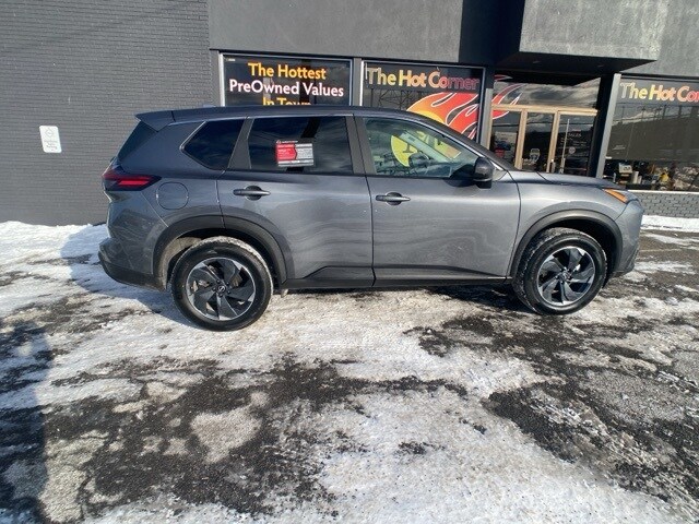 Certified. Gun Metallic 2025 Nissan Rogue SV AWD CVT with Xtronic 1.5L DOHC AWD.