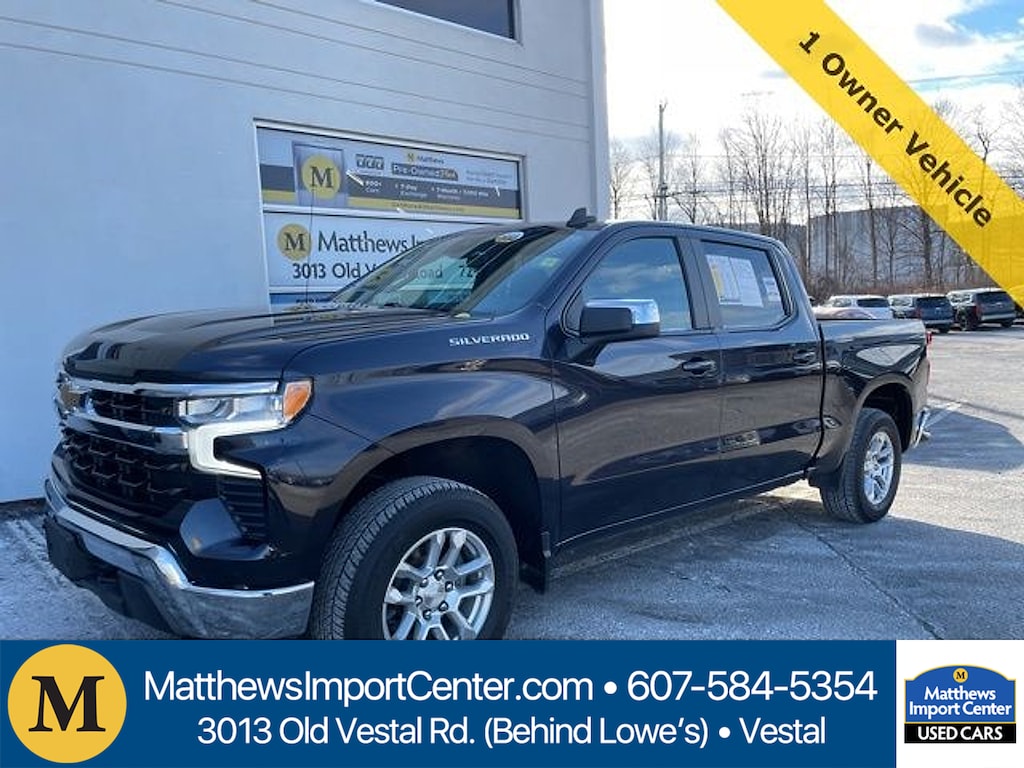Matthews Import Center promises each customer a thorough and confident 120-point inspection on our used inventory guaranteeing a relaxing and peace-of-mind experience. We are located behind Lowes in Vestal NY. Or call us at (607) 729 - 6261Matthews Import Center3013 Old Vestal RoadVestal NY 13850. Dark Ash Metallic 2022 Chevrolet LT Silverado 1500 4WD 8-Speed Automatic 2.7L Turbo