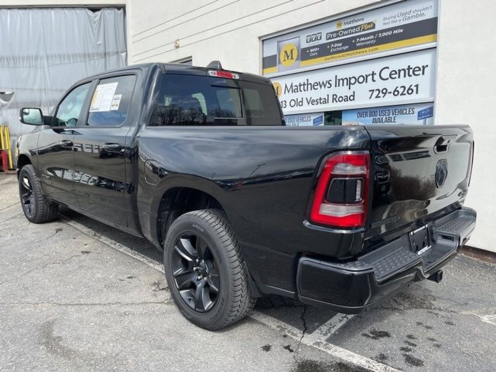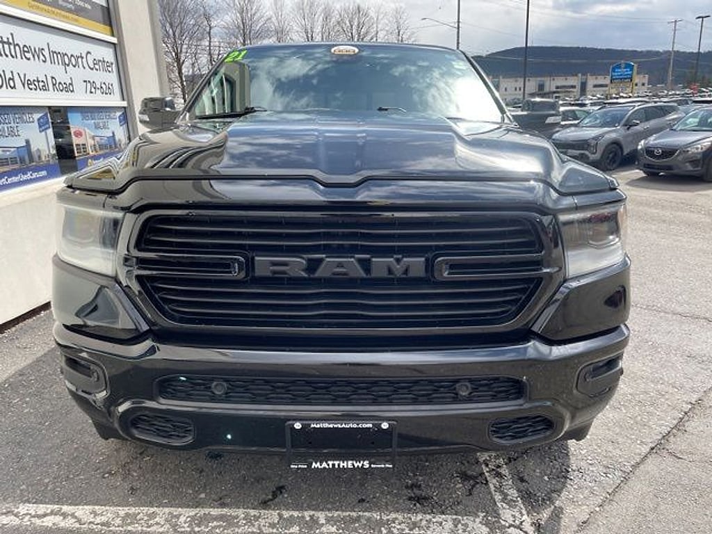Matthews Import Center promises each customer a thorough and confident 120-point inspection on our used inventory guaranteeing a relaxing and peace-of-mind experience. We are located behind Lowes in Vestal NY. Or call us at (607) 729 - 6261Matthews Import Center3013 Old Vestal RoadVestal NY 13850. Diamond Black Crystal Pearlcoat 2021 Ram Big Horn/Lone Star 1500 4WD 8-Speed Automatic 3.6L V6 24V VVTOdometer is 39825 miles below market average!