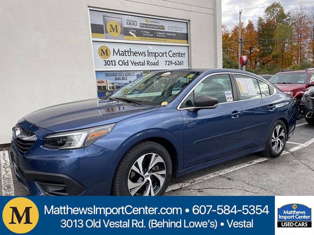 Matthews Import Center promises each customer a thorough and confident 120-point inspection on our used inventory guaranteeing a relaxing and peace-of-mind experience. We are located behind Lowes in Vestal NY. Or call us at (607) 729 - 6261Matthews Import Center3013 Old Vestal RoadVestal NY 13850. Abyss Blue Pearl 2020 Subaru Legacy AWD Lineartronic CVT 2.5L 4-Cylinder DOHC 16V27/35 City/Highway MPG